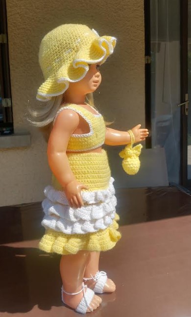 J'ai réalisé la tenue entièrement au crochet en mailles serrées brin arrière pour la base de la