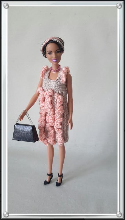 robe d'abord à l'horizontal puis j'ai crocheté à la verticale les 3 Froufrous du devant j'ai